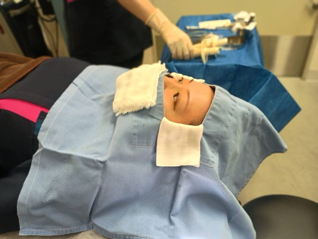 お顔全体を消毒をし、清潔な布を被せます。消毒後はお顔は触れません。