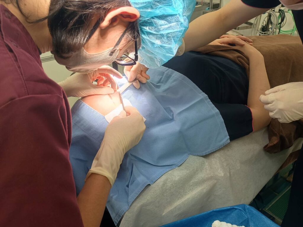 片側2本(4点止め)で固定します。手術終わりまであと少し!