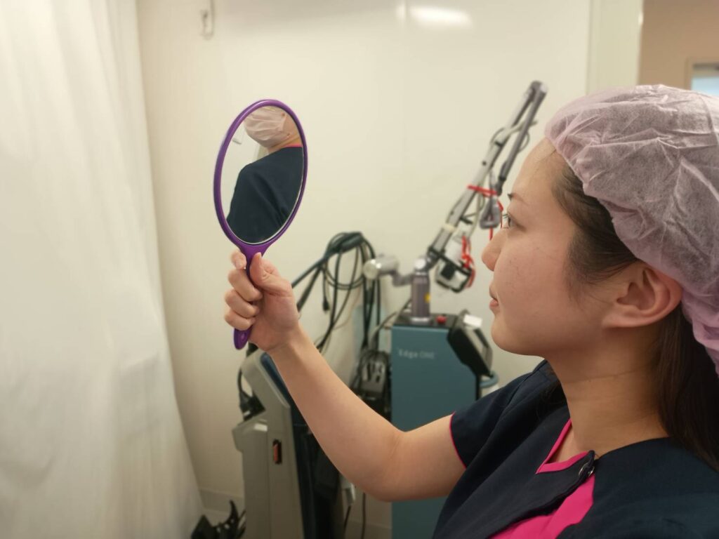 術後はお目元を冷やしながら注意事項についてお話させていただきます。
